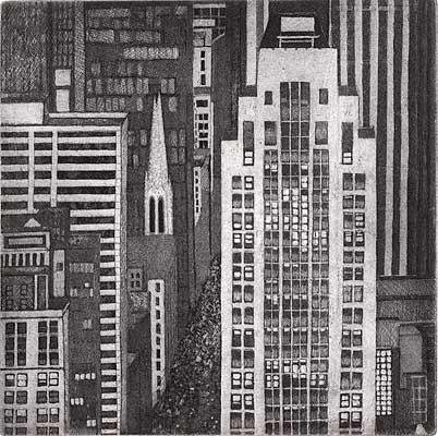 Empire State View Etching and aquatint - 20 x 20 cm Available for sale