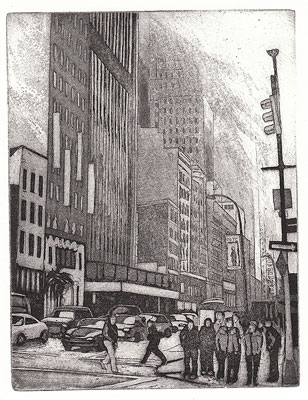 Snow falling, New York Etching & aqutint -19 x 14 cm Available for sale